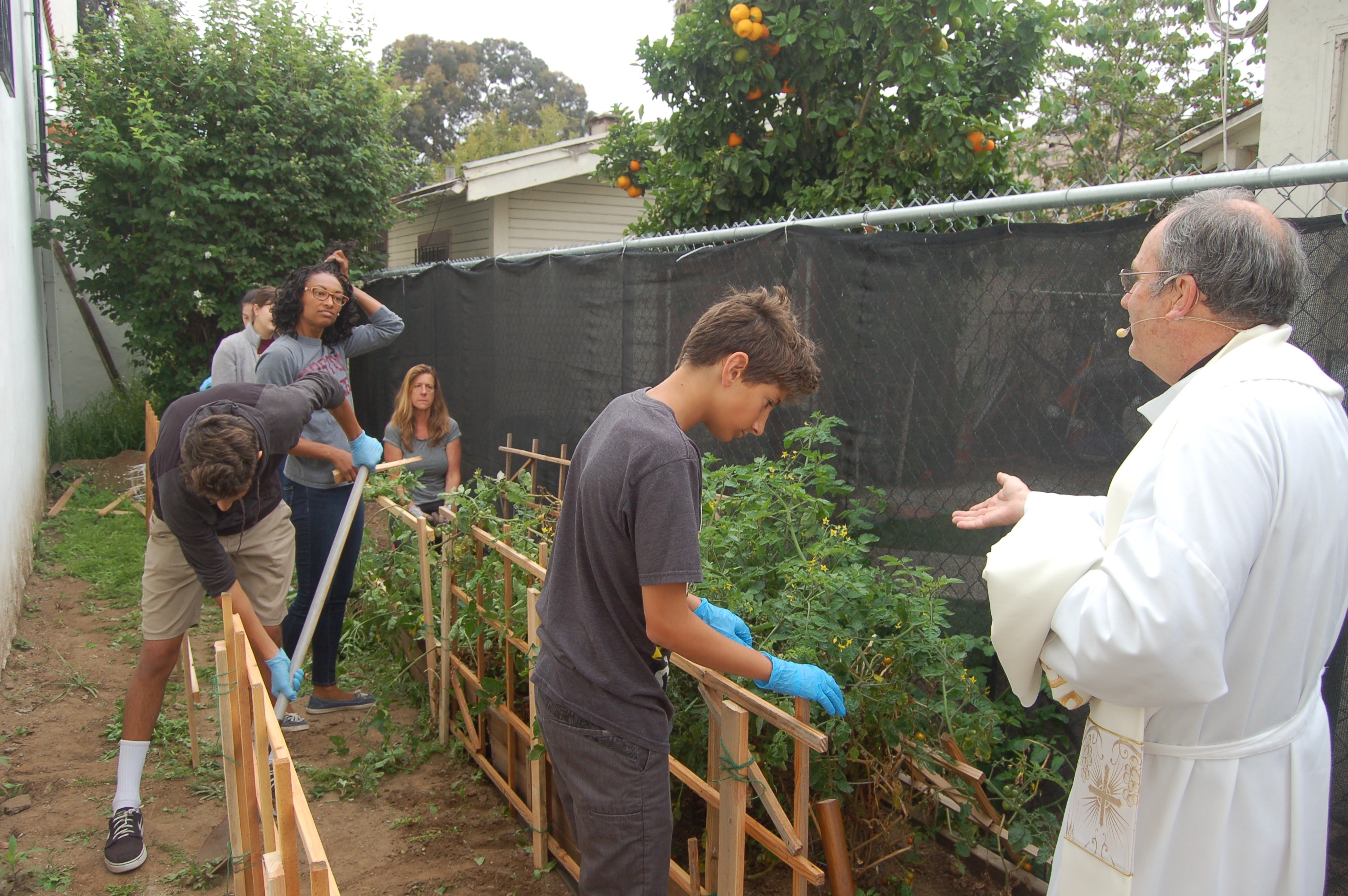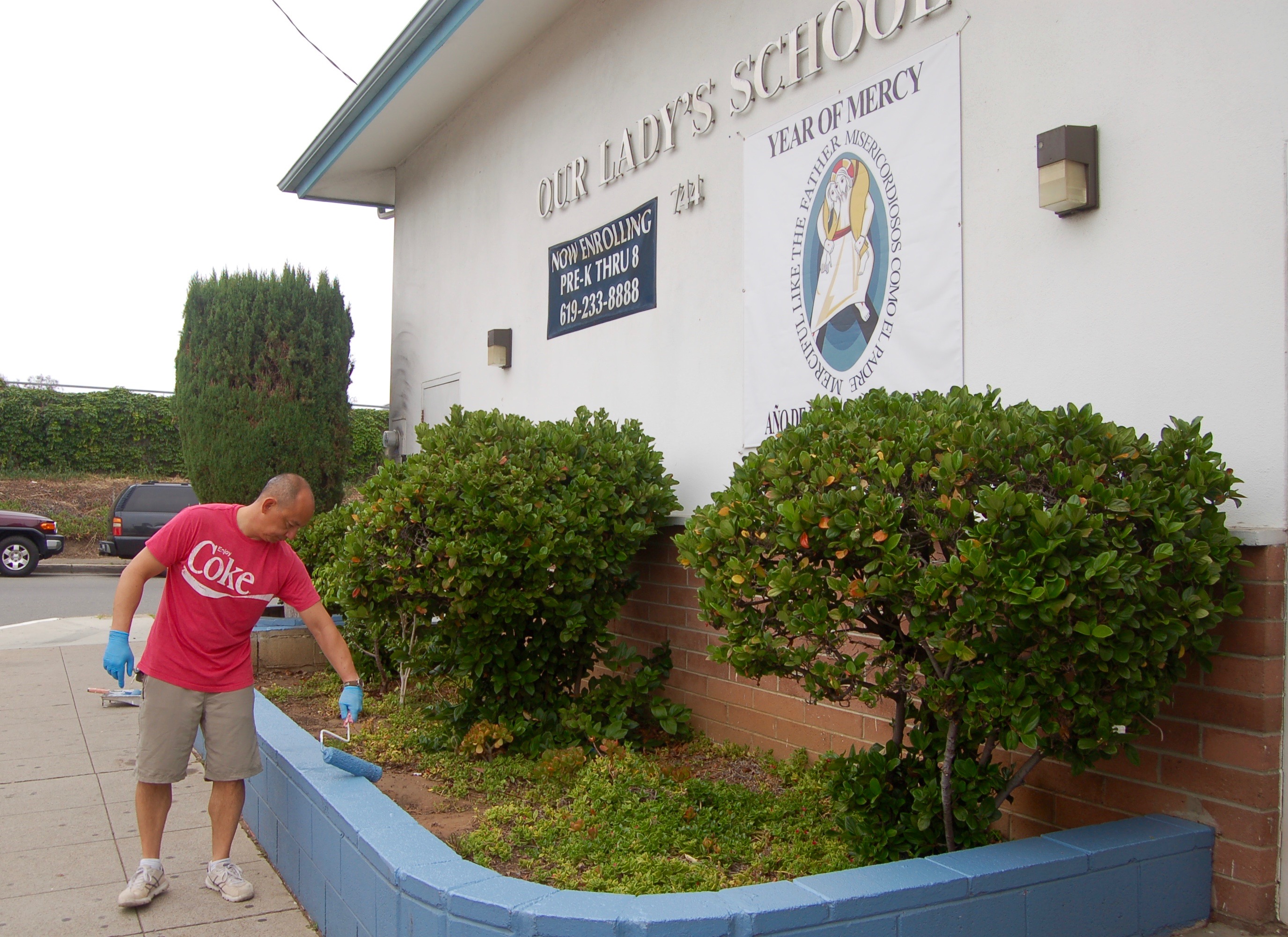 BCSD returned this year to Our Lady’s School, Our Lady of Guadalupe parish, San Diego, as part of Boston College’s Global Days of Service. On Saturday, we assisted school principal Noel Bishop in sprucing up the school grounds and improving the school’s small garden.