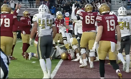 Eagle in the endzone! BC team celebrates first of five touchdowns in yesterday’s game against Georgia Tech.